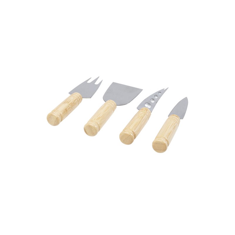 Set per formaggio da 4 pezzi in bambù, composto da una paletta per formaggio (13,3 x 4,7 cm), due coltelli per formaggio (13,5 x 2 cm e 15,3 x 2,5 cm) e una forchetta per formaggio (14 x 3,5 cm). Molto comodo da prendere in mano grazie al design ergonomico, alle dimensioni perfette e al manico arrotondato. I manici di tutti gli accessori sono lunghi 7 cm con un diametro di 1,9 cm. Il set è pensato per servire, tagliare, affettare, fare a scaglie e spalmare vari formaggi duri e morbidi. Gli utensili sono leggeri e salvaspazio, facili da riporre nel mobile della cucina, perfetti per le feste o da tenere sul tavolo da pranzo. Il bambù utilizzato è ottenuto e prodotto in base a standard ecosostenibili.