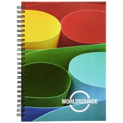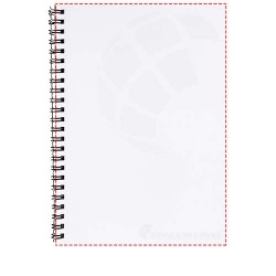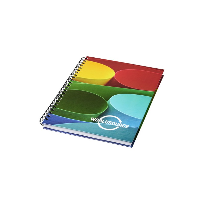 Include 80 fogli di carta in bianco (da 80 g/m²) e spirale nera o bianca. Disponibile in 3 misure; A4, A5 e A6. Disponibile decorazione a colori CMYK sulla copertina e su ogni foglio, davanti e dietro.