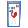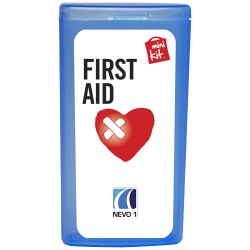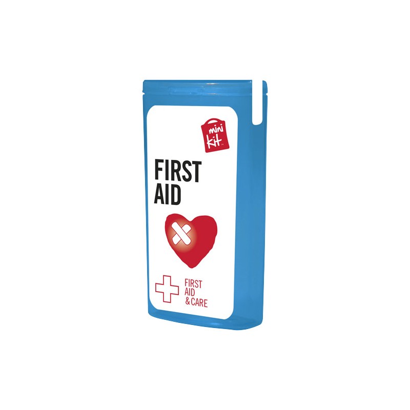 Il kit di primo soccorso compatto ideale. Le dimensioni di questo kit consentono di portarlo sempre con voi. Con questo kit sarete preparati per i piccoli incidenti. Contenuto: 5 cerotti resistenti all'acqua, 2 salviettine disinfettanti. Tutti i prodotti contenuti nei MyKit rispettano le norme Europee vigenti. I prezzi includono stampa all-over fronte e retro.